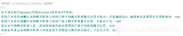 - 在完成各数据集合并之后,我们还需要构造了4个特征,它们都是基于各个部分已构造的特征提取的。这四个特征都关于距离,最后的机器学习模型阶段证明,这4个关于距离的特征对于预测用户是否核销优惠券是非常有指示意义的。