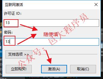 13、 许可证ID、密码随便填,然后点激活