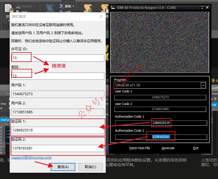 16、 把对应的复制过来,上面的许可证ID和密码随便填,然后点击激活