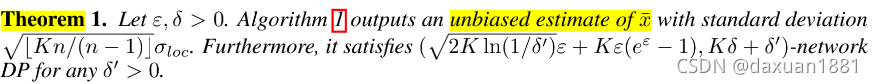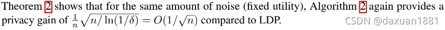 ,因此算法1提供了O(1/√n) reduction in error,就等同于O(1/√n) gain in ε。Algorithm 1 achieves the same privacy-utility trade-off as a trusted aggregator 。