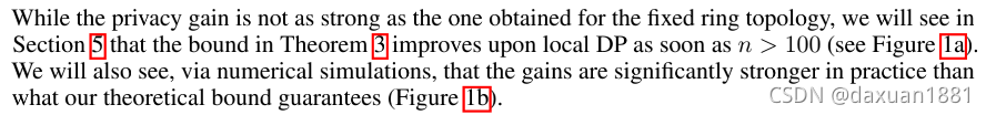 4.对于随机梯度下降优化中,提出了decentralized SGD algorithm。在某些情况下,隐私放大为