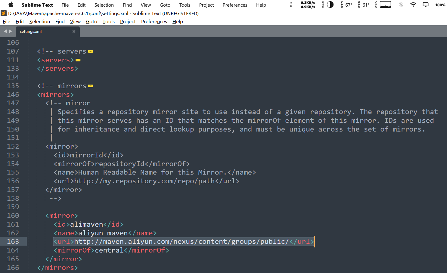 修改 conf/settings.xml 中的标签,为其添加如下子标签: