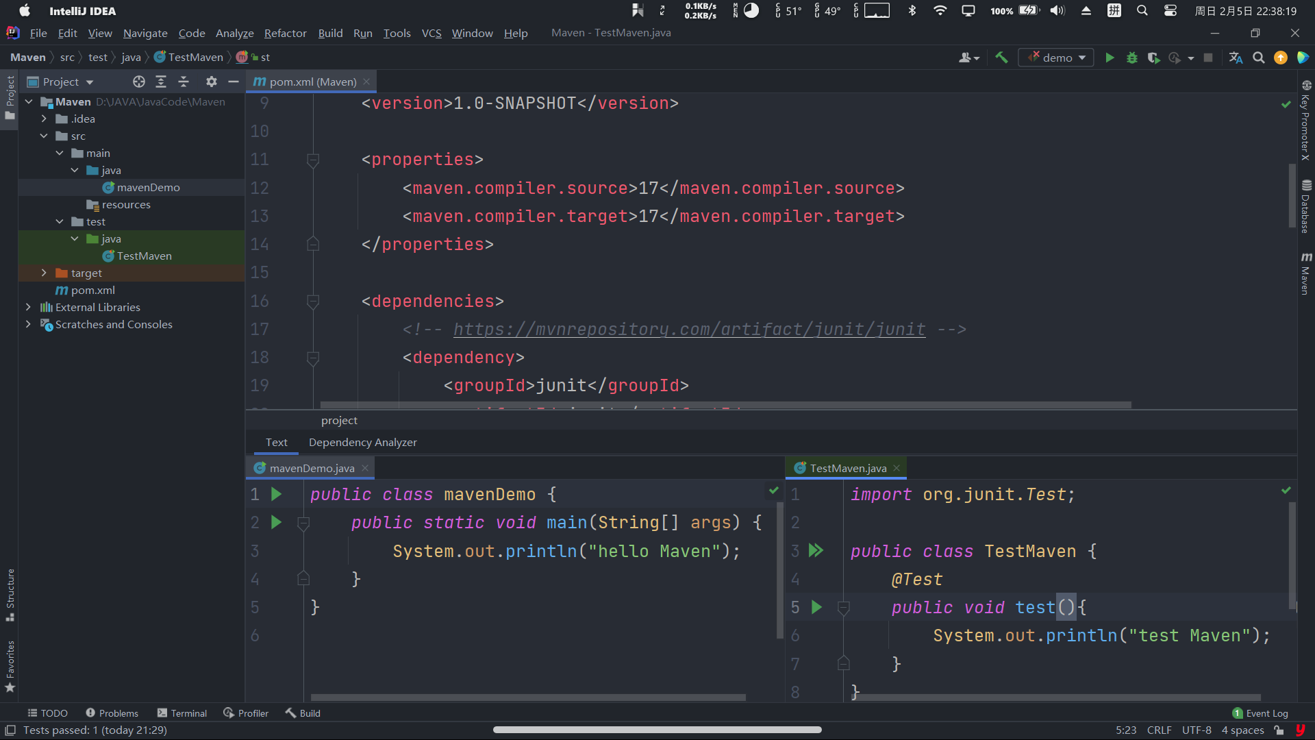 代码配置的是Test目录中任意目录下的任意文件都看成测试类,在执行mvn test命令时都会默认检测所有文件,并执行带有@Test注解的测试方法