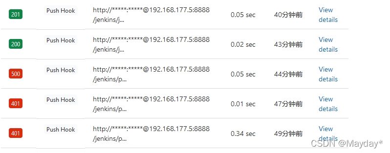 还有没有报错但是并没有触发jenkins构建,返回了200