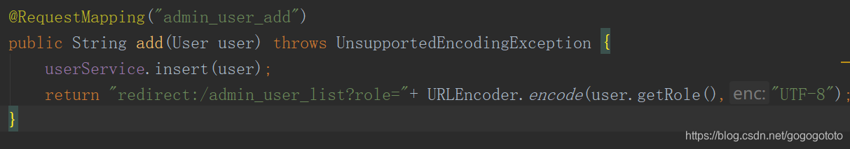 user.getrole()内容为中文,重定向数据丢失,使用URLEncoder.encode(中文参数,编码格式)