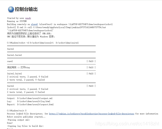 应该把构建命令改成“robot -d D:\robot\demo\result\  D:\robot\demo\suite1”(加上测试报告生成的路径)
