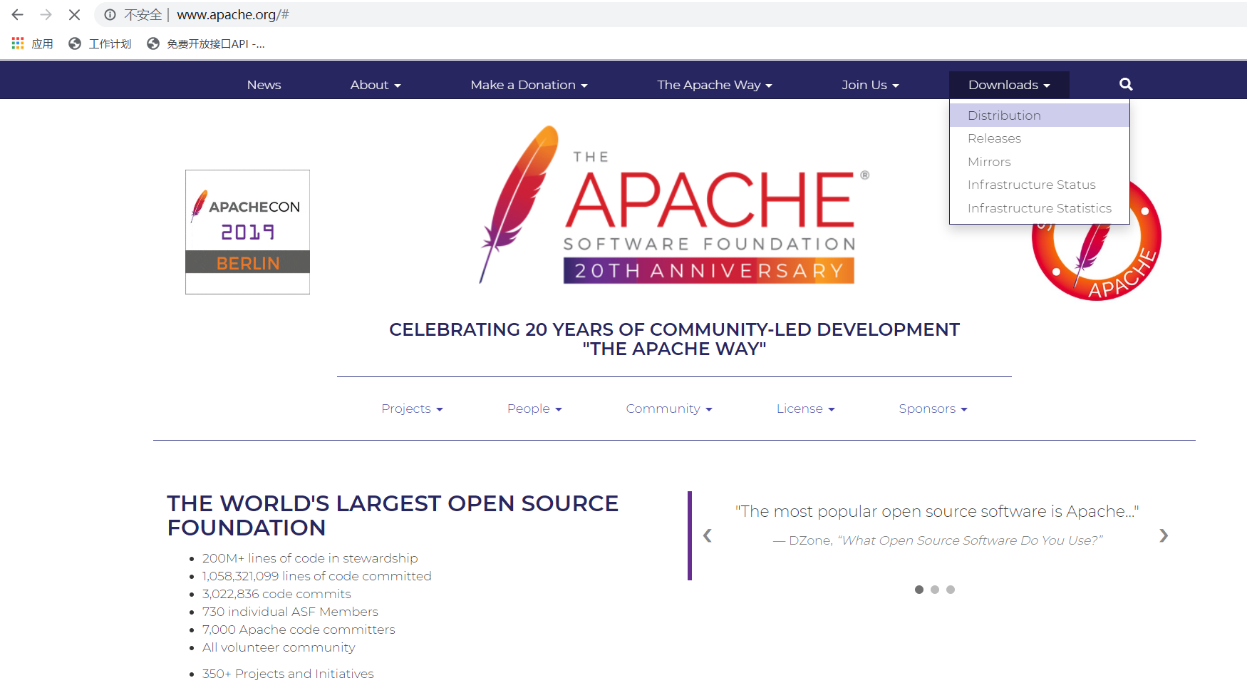 1.打开链接:http://www.apache.org/,根据图片提示完成apache的下载