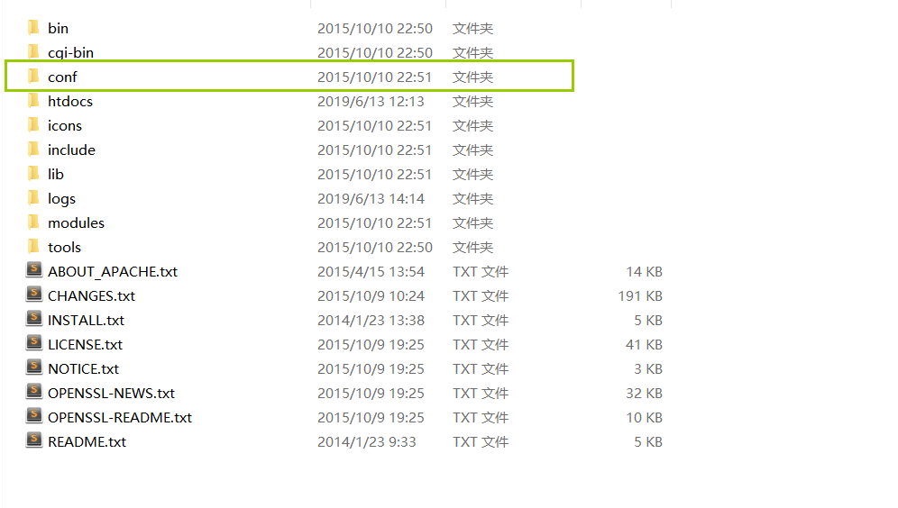 将此安装包解压在你自定义的位置,解压后会有一个apache24的文件夹,点击进入后会看到conf文件夹,打开此文件夹