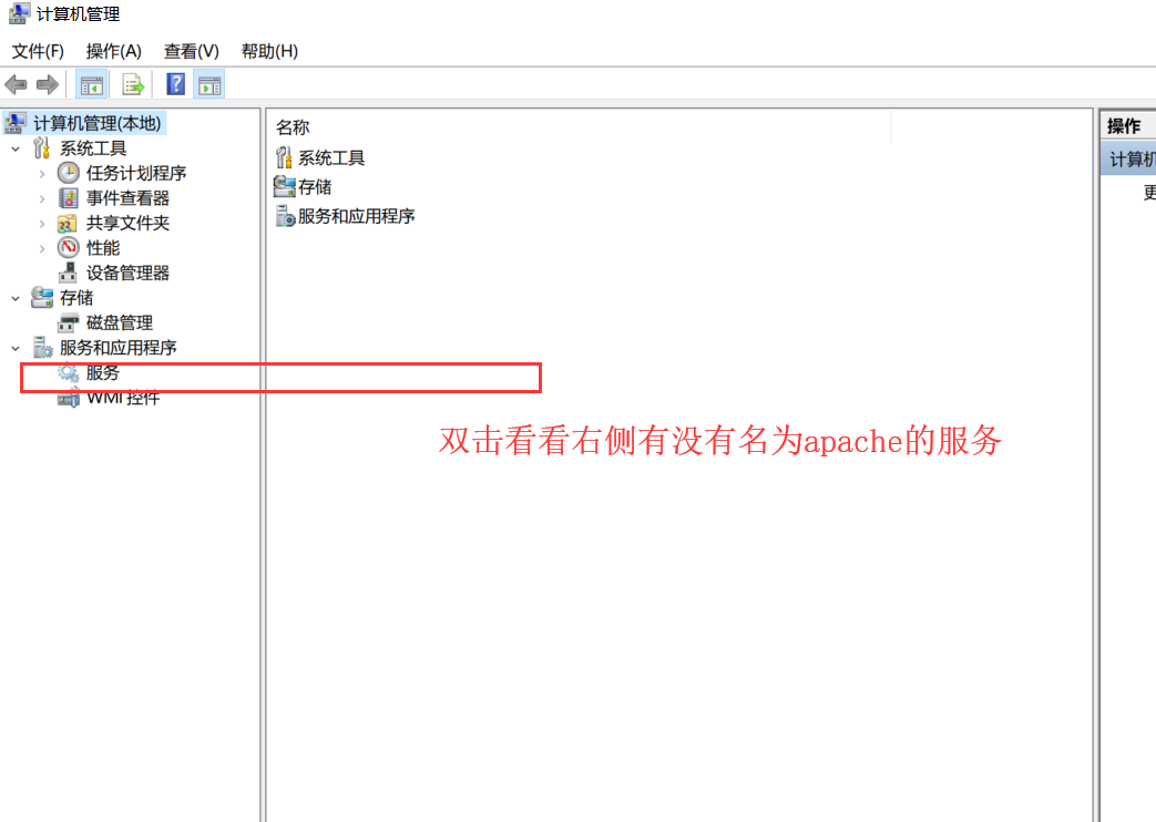 如果不报错,则重复上步操作看看服务下有无apache服务,如果有则重启电脑,步骤同上