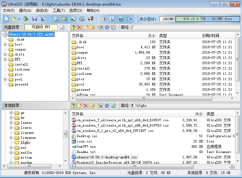 重点再看光盘目录是可启动EFI,这样的情况导致我自己在选择biosx必须打开UEFI否则就启动不了启动U盘,但我的windos就是不需要让UEFI打开的,矛盾就是在这里,没有办法,遇到这种情况就不要使用软碟通