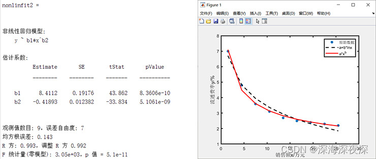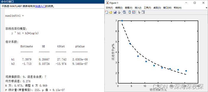 % 将m1指定的模型拟合到表或数据集数组中的变量,并返回非线性模型nonlinfit1