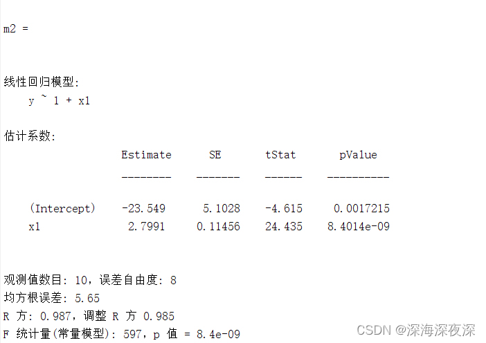m2 = LinearModel.fit(x,y) % 创建线性回归模型,X、Y是对应数据