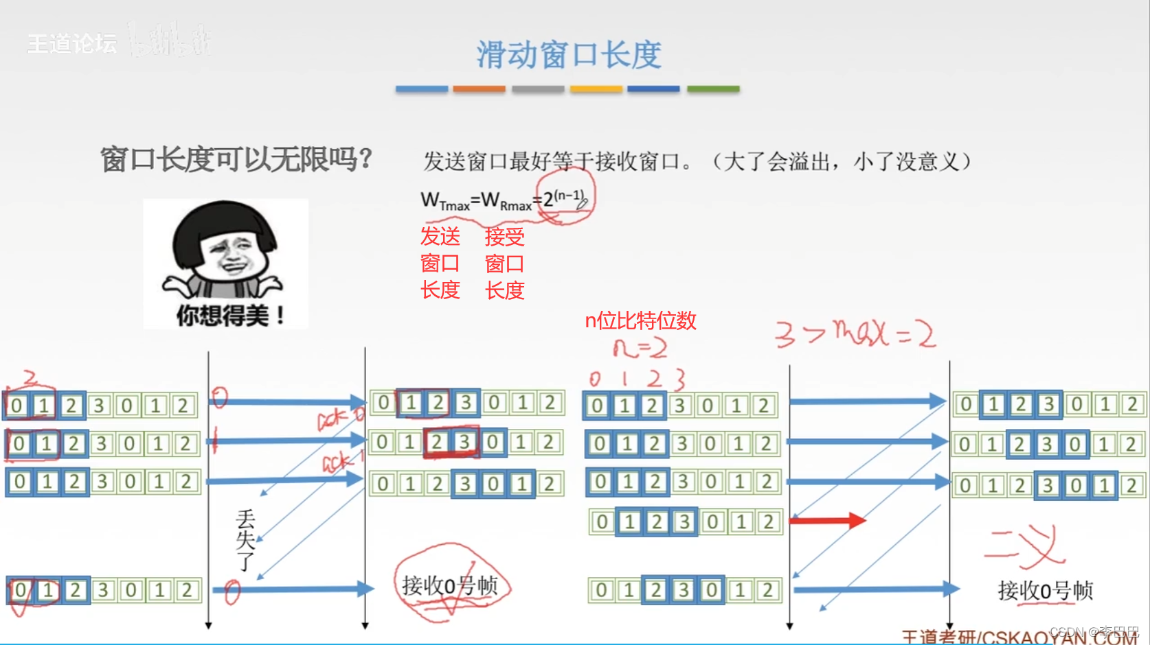 发送窗口最大为2的n次方-1,接收窗口大小为1