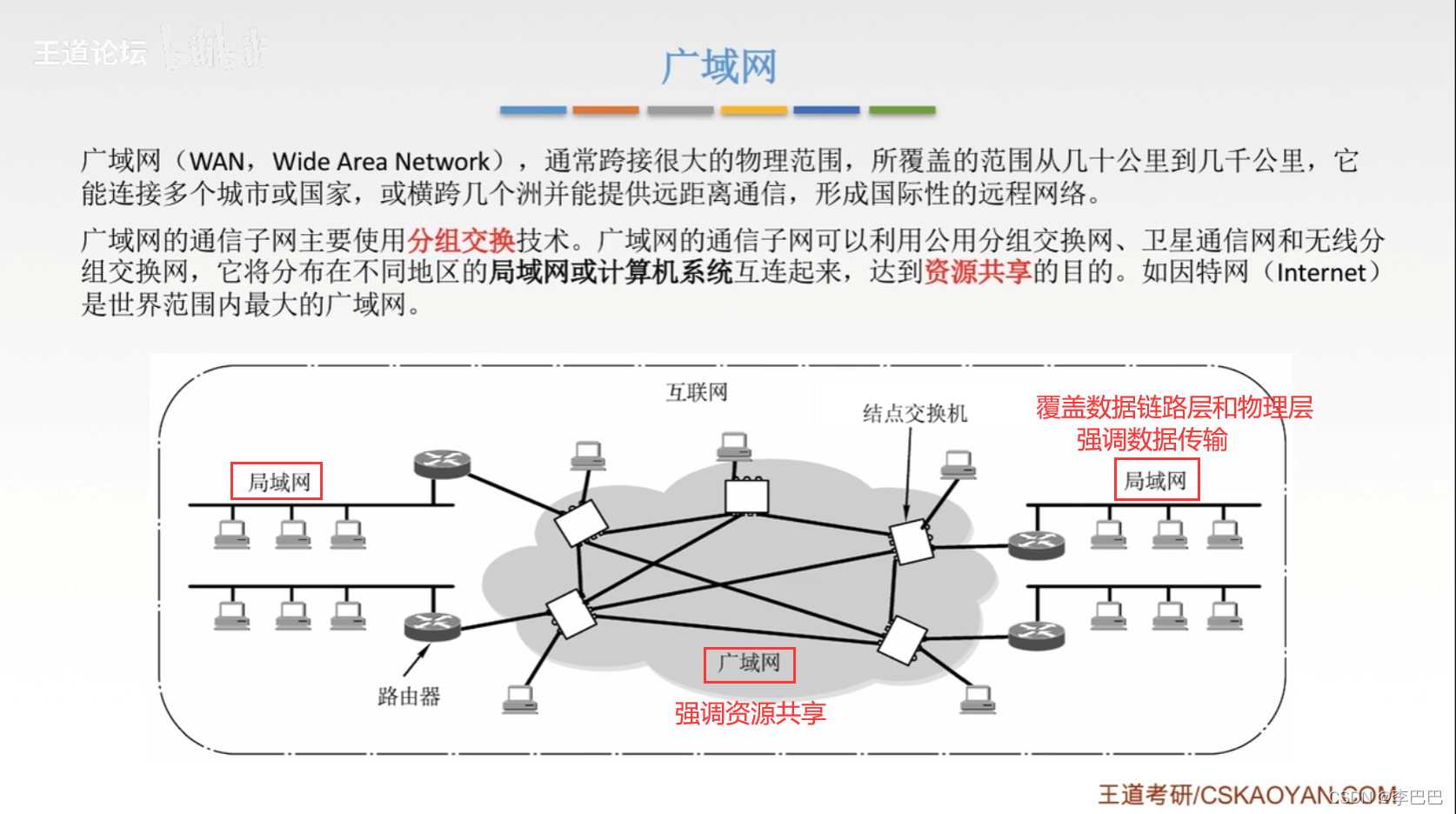 局域网(Local Area Network):简称LAN,是指在某一区域内由多台计算机互联成的计算机组,使用
