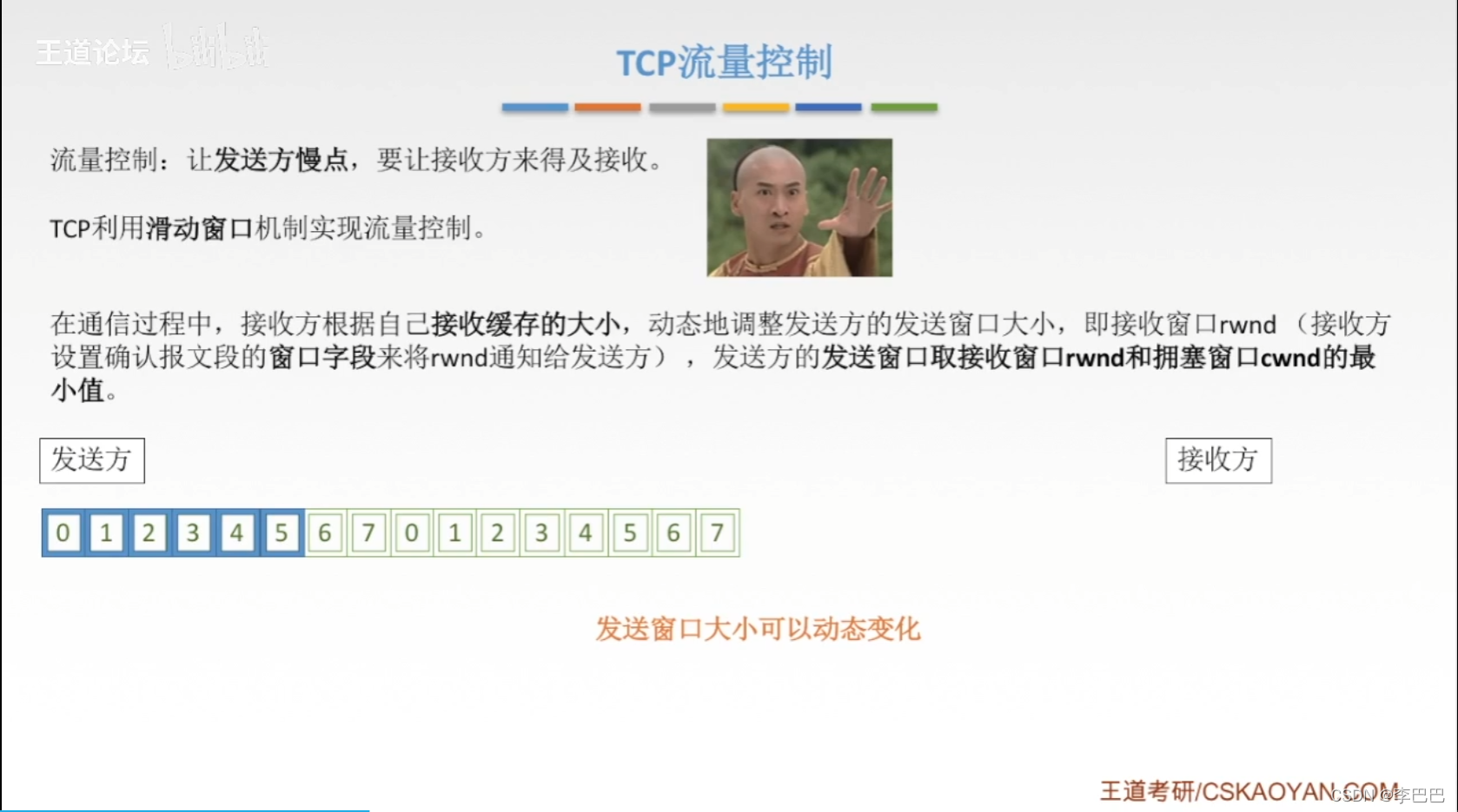 流量控制:控制发送速率,使接受方有足够的缓冲空间来接受每一个帧