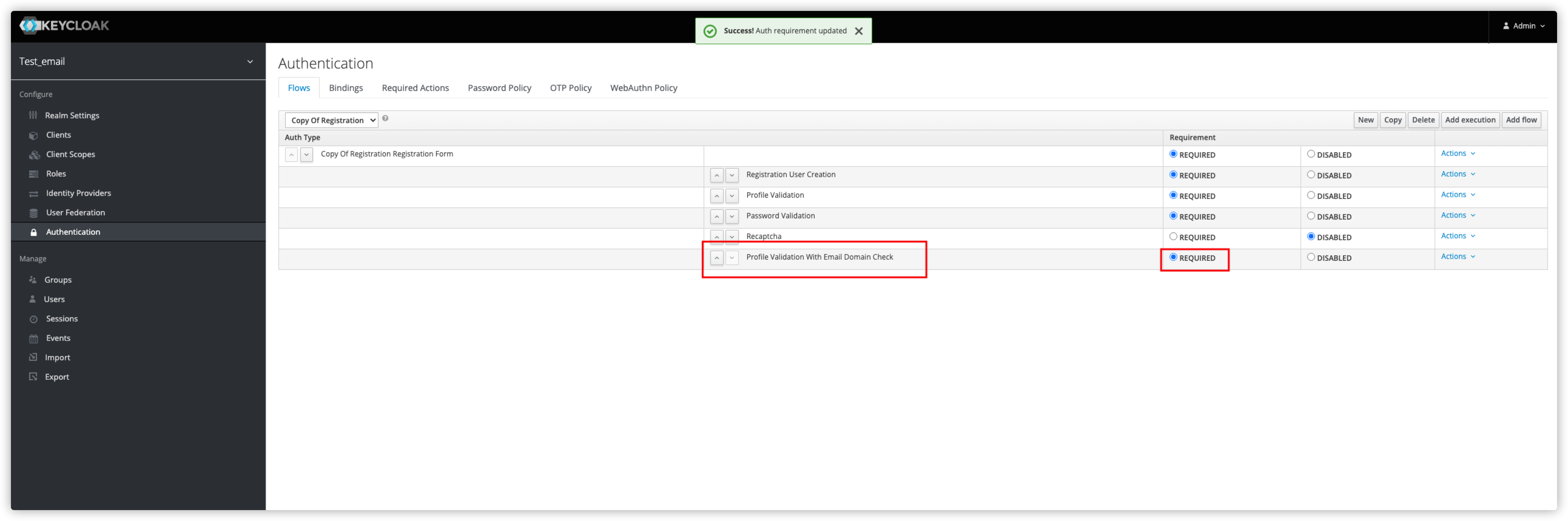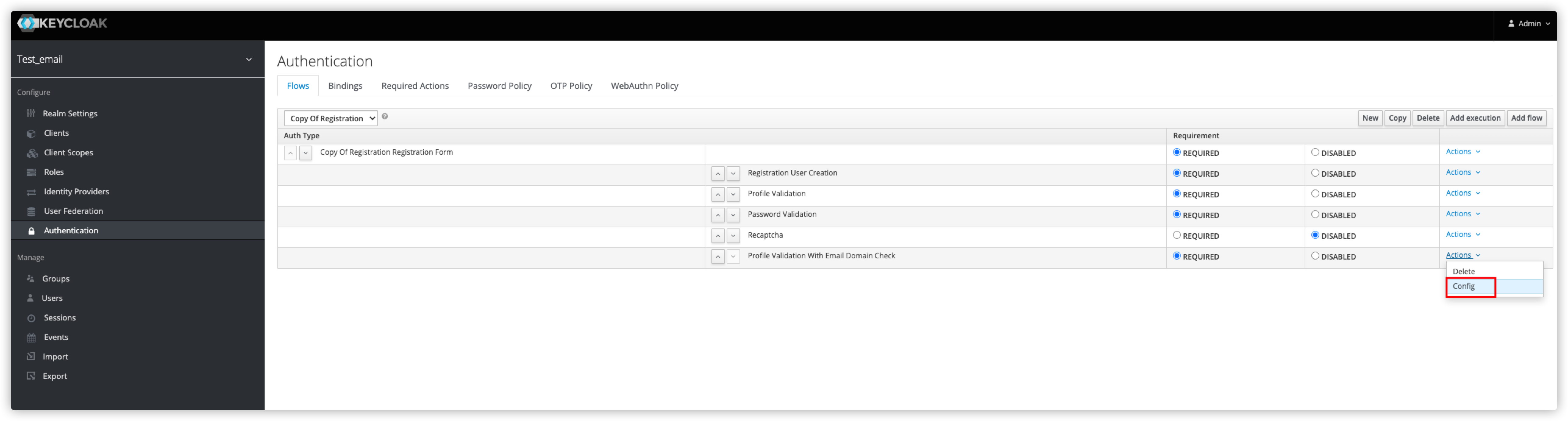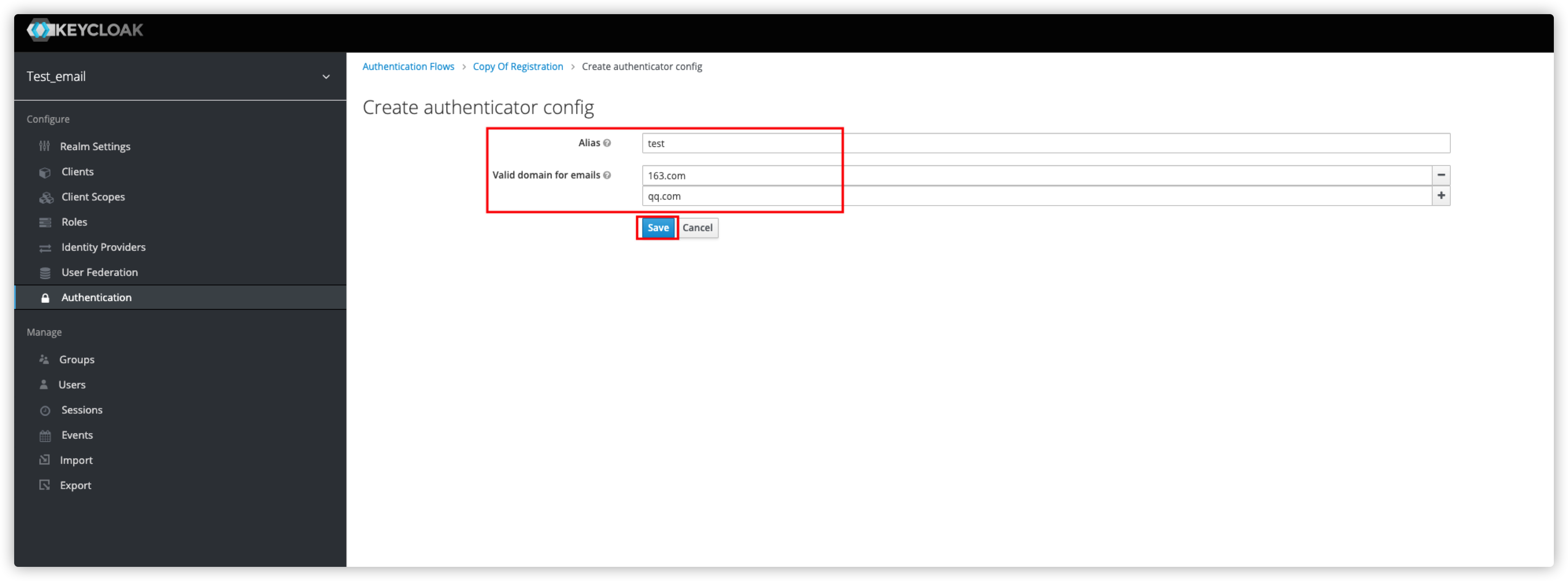 keycloak可以开启邮箱注册功能, 也可以验证邮箱激活, 但是没有验证邮箱后缀的功能
