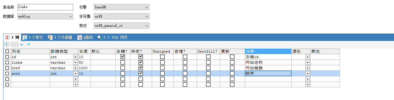 - 用户表(用户登录注销,用户的个人信息,写博客,创建分类)