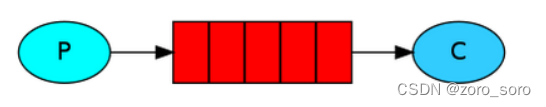 ⽣产者将消息发送到队列,消费者从队列中获取消息。