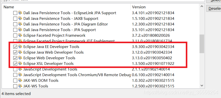 eclipse会搜寻这个网址的所有软件,并且显示到下面的列表。然后把这个列表拉到最后。展开“Web,Xml…”这个选项
