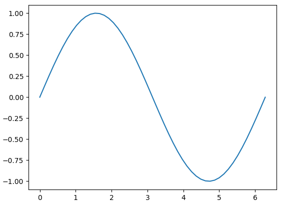 # 它包含了50个元素的数组,这50个元素均匀的分布在[0, 2*pi]的区间上。然后通过np.sin(x)生成y