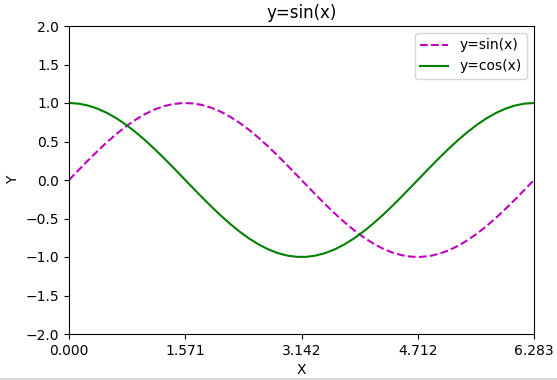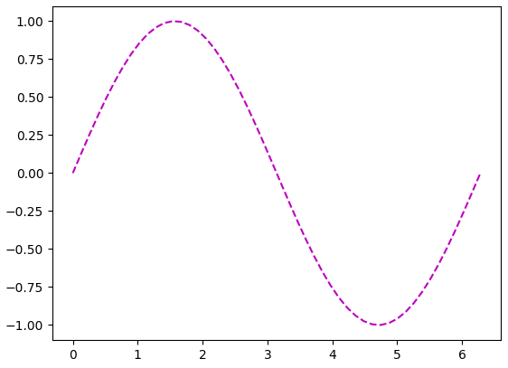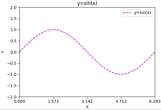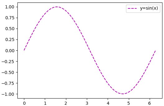 plt.plot(x, y, 'm--', label="y=sin(x)") # 添加图例