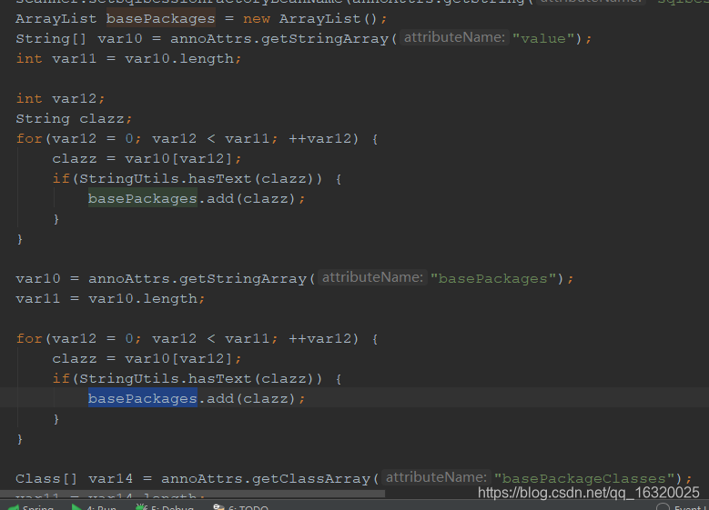 2.编写自己的MapperScannerRegistrar,主要区别在于图中这块代码的解析方式改为支持spring占位符的方式解析