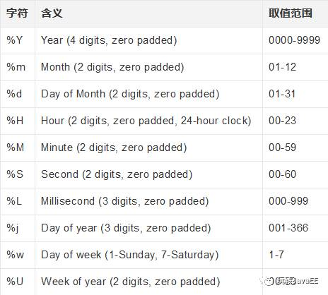 是MongoDB3.0+中的功能。格式化的字符还有以下几种: