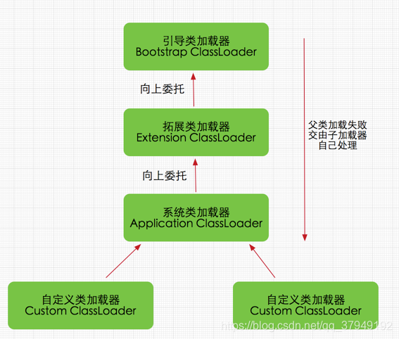 在Java的日常应用程序开发中,类的加载几乎是由上述3种类加载器相互配合执行的,在必要时,我们还可以自定义类加载器,需要注意的是,Java虚拟机对class文件采用的是按需加载的方式,也就是说当需要使用该类时才会将它的class文件加载到内存生成class对象,而且加载某个类的class文件时,Java虚拟机采用的是双亲委派模式即把请求交由父类处理。