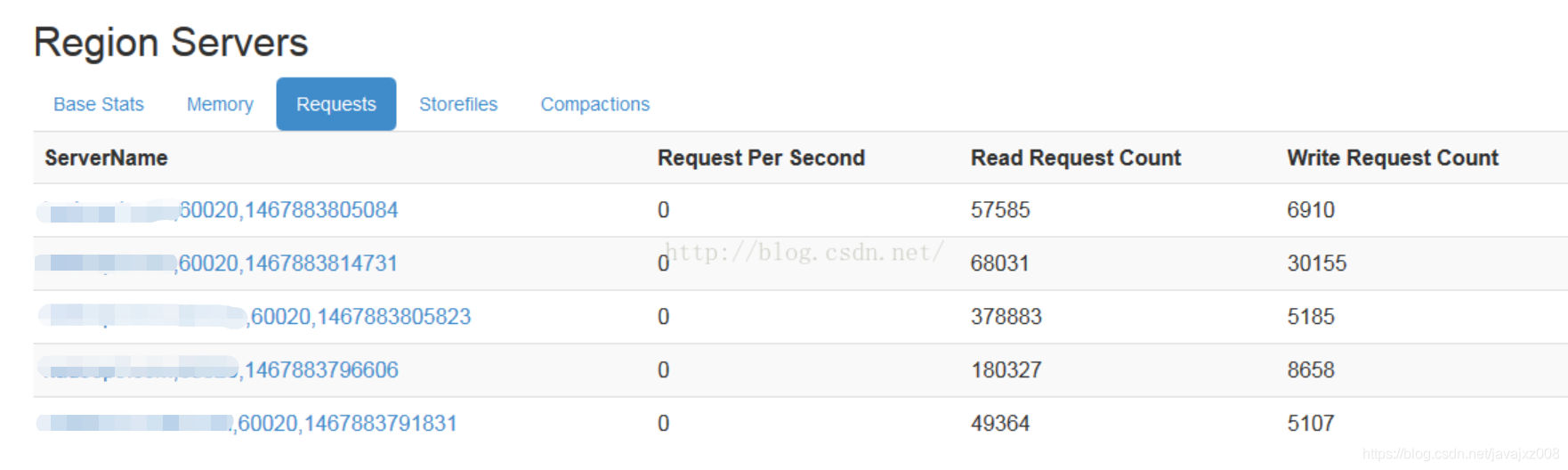 再看看写数据是否均匀的命中各个region,是否能够做到对写请求的负载均衡: