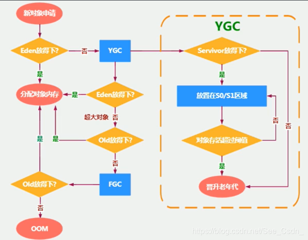 - 由Eden区、survivor space0 (From Space)区向survivor space1 (To Space)区复制时,对象大小大于To Space可用内存,则把该对象转存到老年代,且老年代的可用内存小于该对象大小