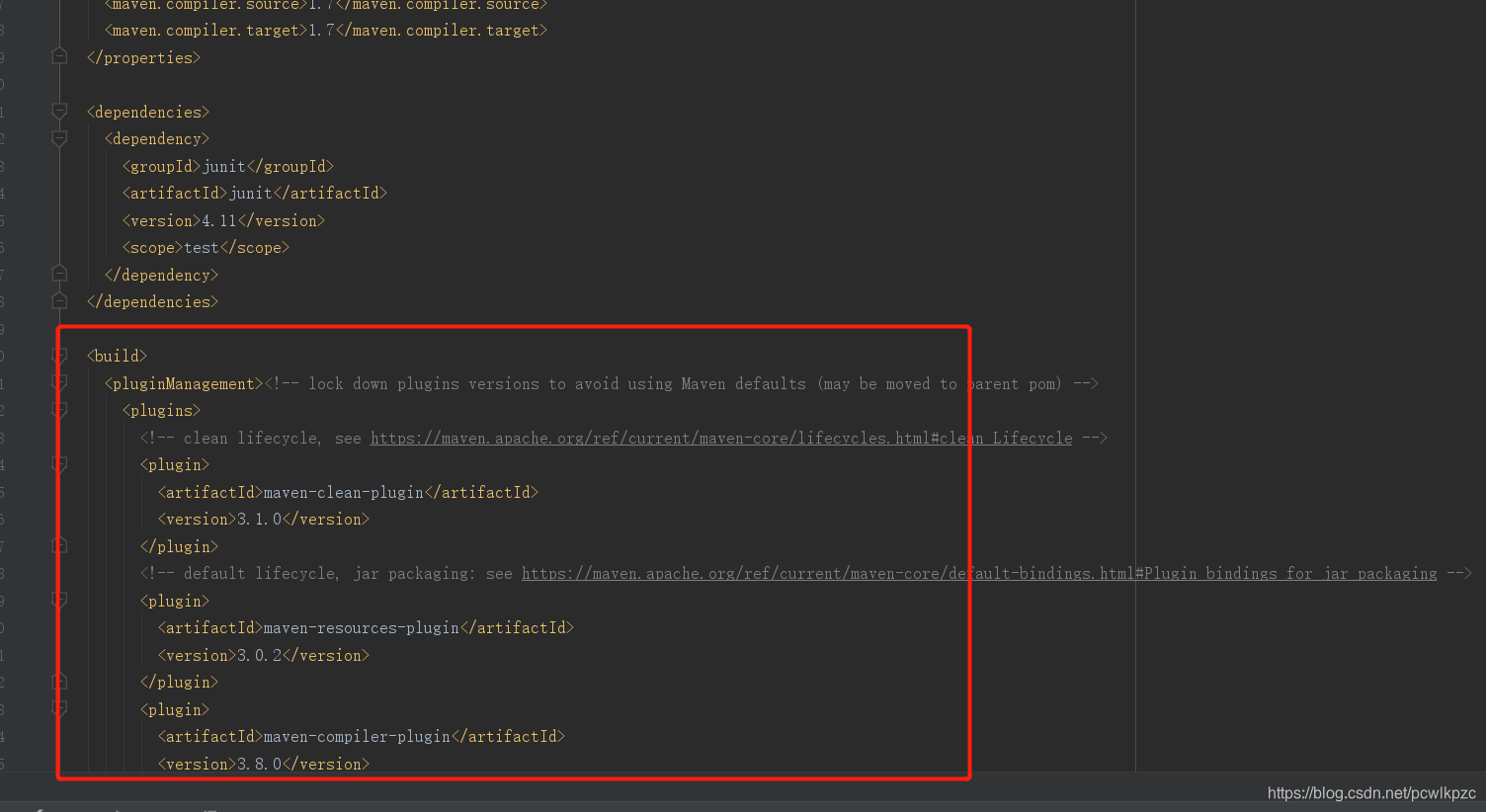<pluginManagement><!-- lock down plugins versions to avoid using Maven defaults (may be moved to parent pom) -->