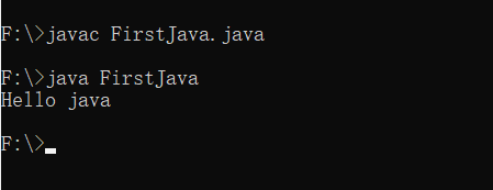 接下来输入java FirstJava,注意不用跟.java后缀,回车后你就可以看见程序在屏幕上输出了Hello java。