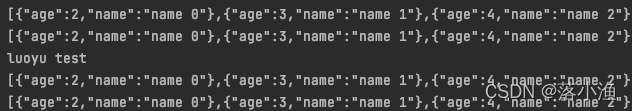 [arthas@30992]$ watch com.example.arthasquestionognl.ognlDemo.Test test "params[0].{? #this.age > 5}.{name}" -n 1 Press Q or Ctrl+C to abort. Affect(class count: 1 , method count: 1) cost in 21 ms, listenerId: 11 method=com.example.arthasquestionognl.ognlDemo.Test.test location=AtExit ts=2022-01-06 17:30:04; [cost=0.326398ms] result=@ArrayList[ @String[name 4], @String[name 5], @String[name 6], @String[name 7], @String[name 8], @String[name 9], @String[name 10], @String[name 11], @String[name 12], @String[name 13], @String[name 14], @String[name 15], @String[name 16], @String[name 17], @String[name 18], @String[name 19], @String[name 20], @String[name 21], @String[name 22], @String[name 23], @String[name 24], @String[name 25], @String[name 26], @String[name 27], @String[name 28], @String[name 29], @String[name 30], @String[name 31], @String[name 32], @String[name 33], @String[name 34], @String[name 35], @String[name 36], @String[name 37], @String[name 38], @String[name 39], ]其中