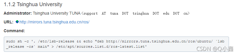 sudo sh -c ‘. /etc/lsb-release && echo “deb http://mirrors.tuna.tsinghua.edu.cn/ros/ubuntu/ `lsb_release -cs` main” > /etc/apt/sources.list.d/ros-latest.list’