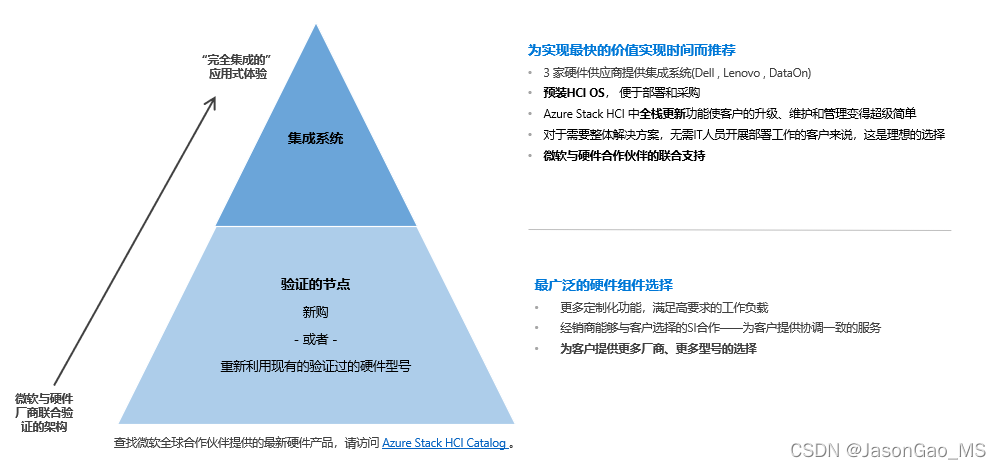 方案,除了集成系统也可以选择验证节点,提供更广泛硬件选择,您可以根据组件清单重新利用现有验证过的硬件型号。您都可以在