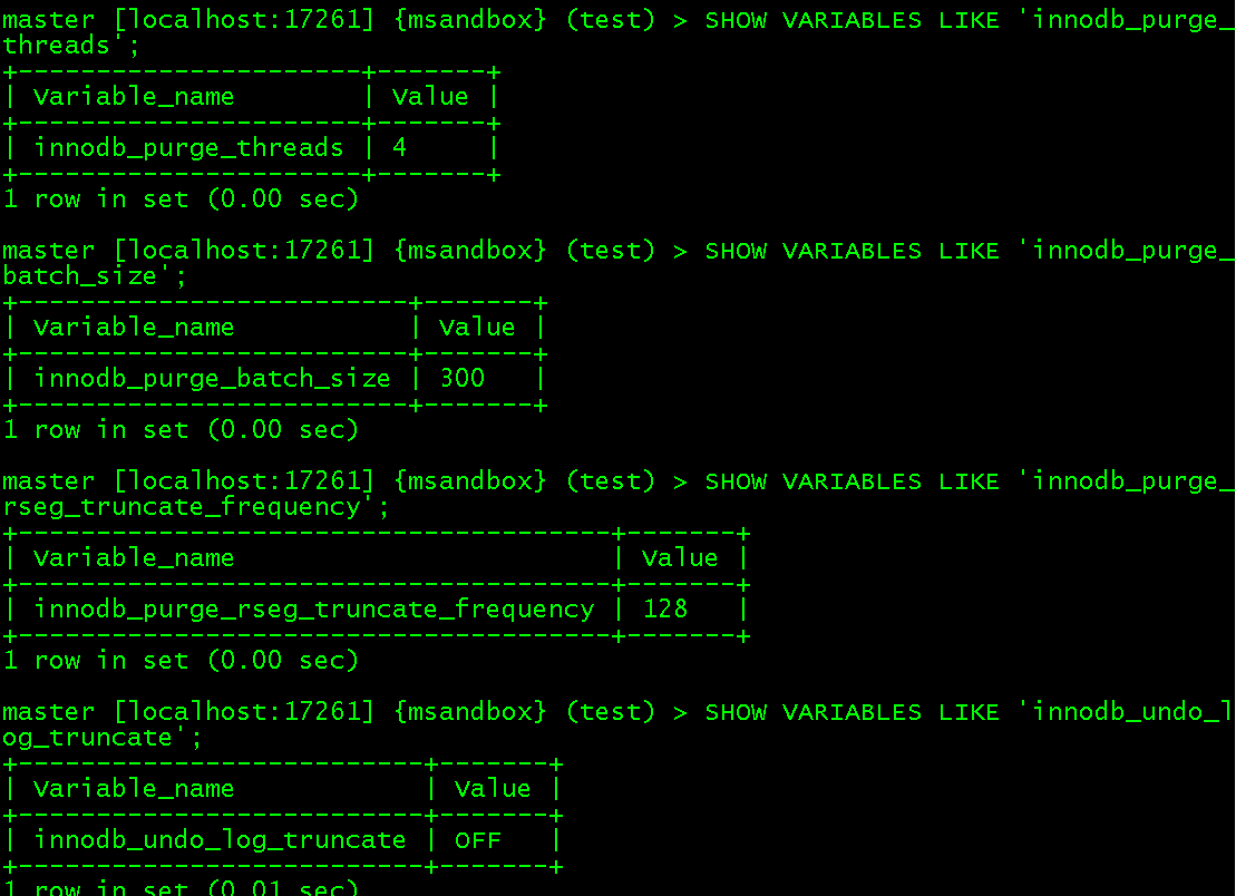 del flag在事务提交后,由协调线程判定是否能够进行清理,如果可以清理会分发给工作线程进行清理,这是一个异步的过程,如果修改数据比较多,那么这个过程可能比较慢,并且可以看到purge的相关线程压力较大,但是还算及时。