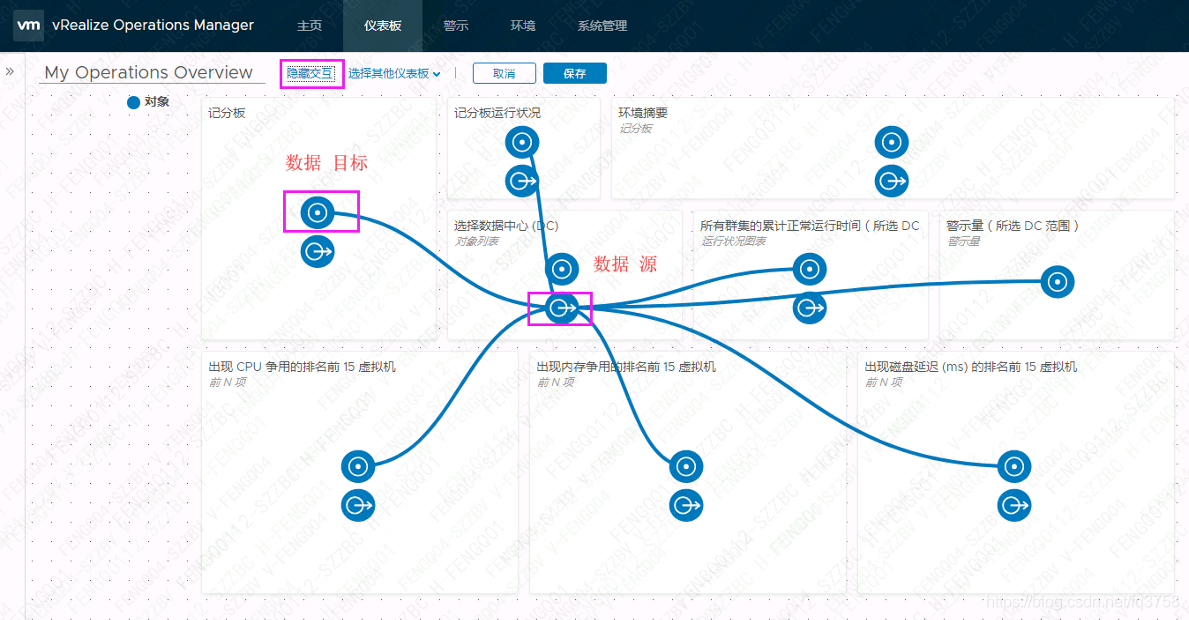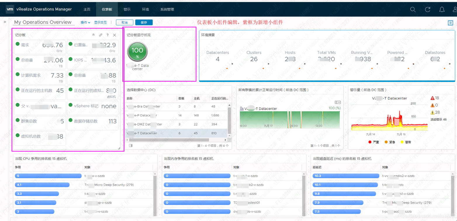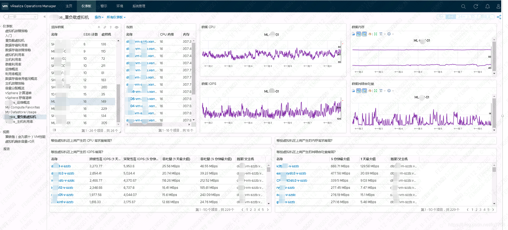 前话:VROPS的最强功能之一,仪表板。VMware 运维超强图示工具,功能强大,参数繁多。本篇不多说,只上几个在用的仪表板图示。