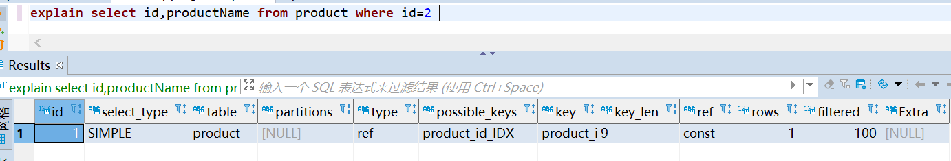 表示实际使用的索引,这个索引必然包含在possible_keys中