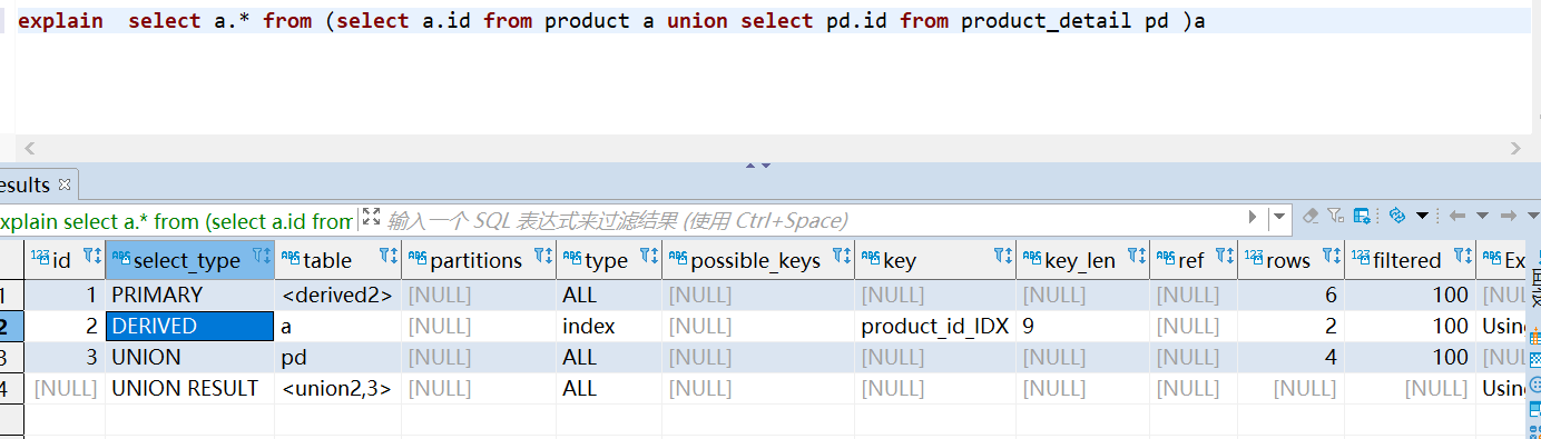 (5) UNION RESULT(UNION的结果,union语句中第二个select开始后面所有select)