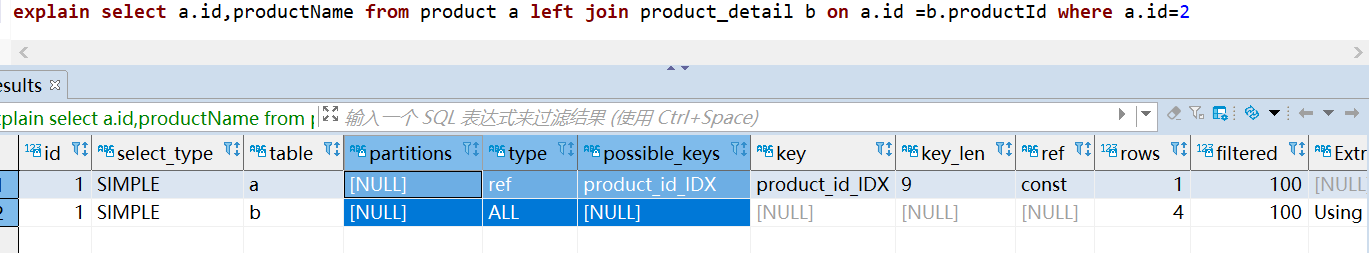 列与索引的比较,表示上述表的连接匹配条件,即哪些列或常量用于查找索引列的值