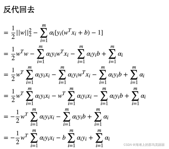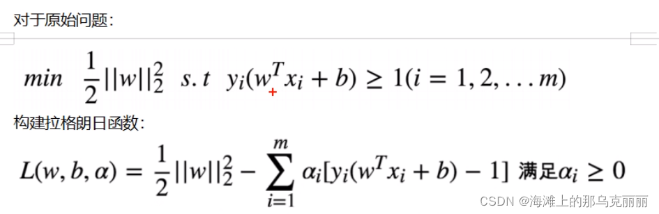 3.因为SVM损失函数是带有约束条件的最优化问题,我们就将SVM写成拉格朗日需要满足的形式