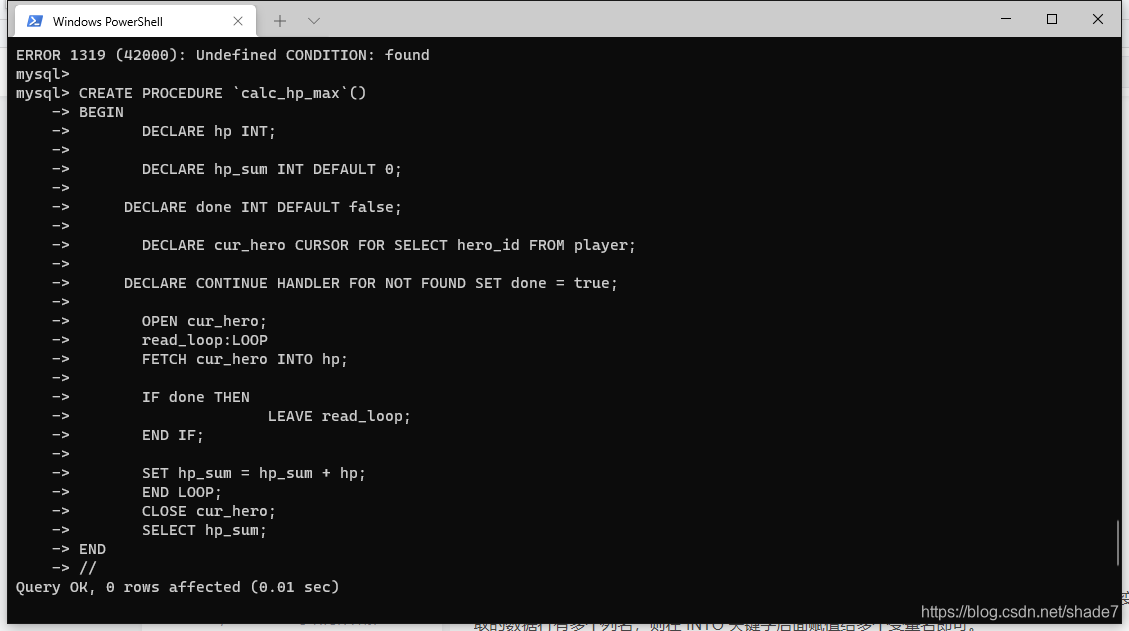 DECLARE cur_hero CURSOR FOR SELECT hp_max FROM heros;