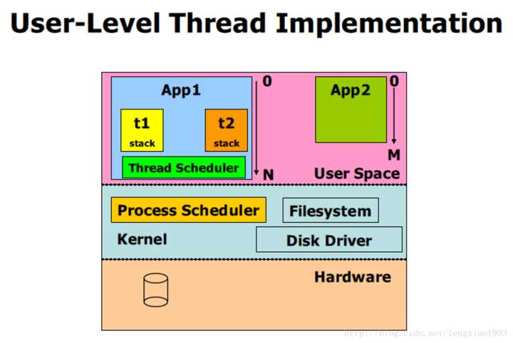 问题: 内核支持线程可移植性差, 其实现对于不同的操作系统而言有所差别。