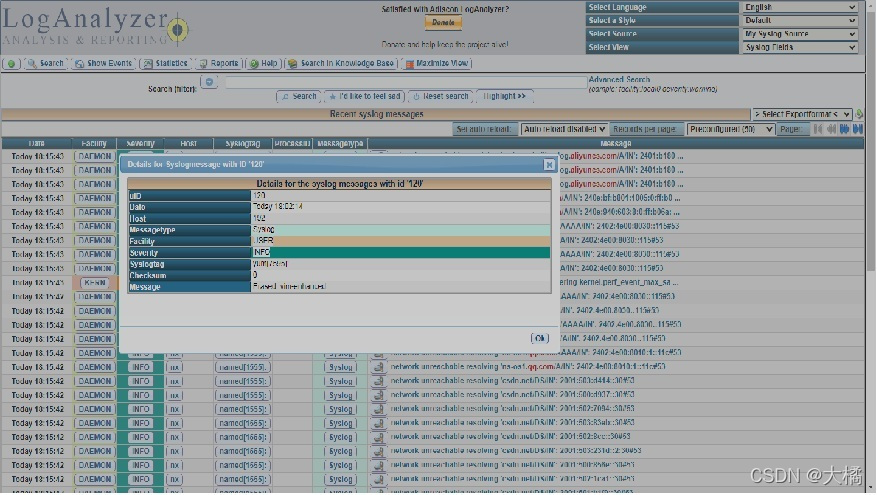 其实,这时候在centos7上的操作,原本收集到messages的日志都会到centos6的mysql中国去了。因此,接下来要配置一个图形化的工具loganalyzer。