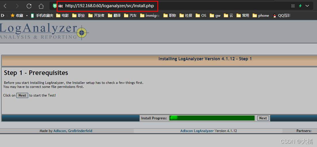 浏览器输入站点路径就可以了http://192.168.0.60/loganalyzer/src/install.php。第一次记着访问install.php页面,忘了也没关系,它会提示你并给个链接。