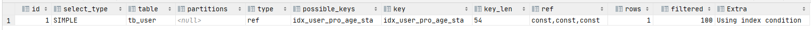 explain select * from tb_user where age = 31 and status = '0' and profession = '软件工程';