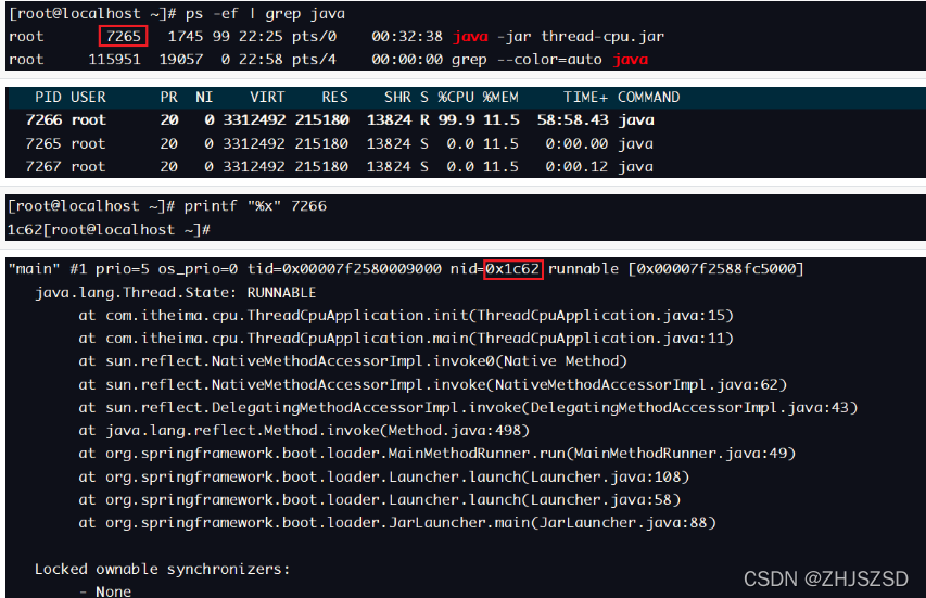 4、通过jstack -l pid查询进行中的线程nid(native thread id)