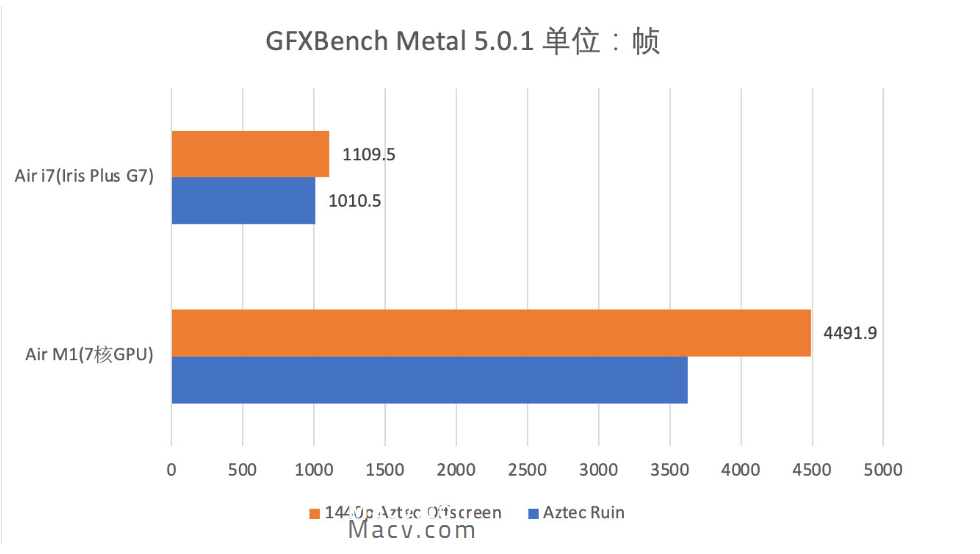 年轻人不讲武德,Intel曾经的最强核显Iris毫无面子。苹果宣称M1拥有2.6T的浮点运算能力,轻轻松松就抬走了Intel Iris核显,据网上其他跑分资料显示其分数已经和桌面级GTX1050Ti和RX560相当。值得注意的是,我的Air是残血M1,少一颗GPU核心,如果是满血M1,其实力会更强(按照过去A12X和A12Z的比例来看差距约15%)。