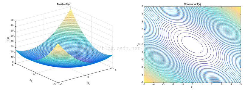 可以发现上面矩阵H即为Hessian矩阵,具有对称性。而二次型的矩阵也是对称的,接下来主要介绍下二次型最优化,以一个具体例子进行说明。