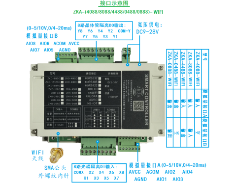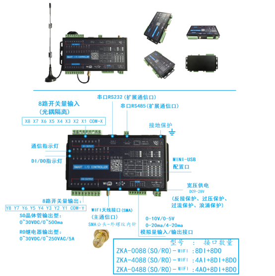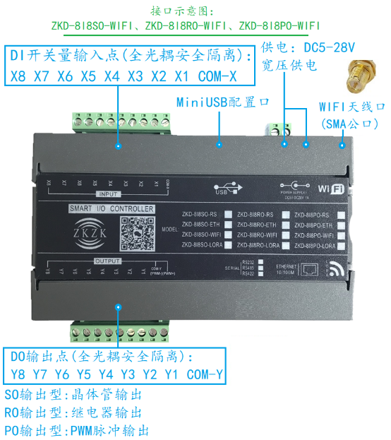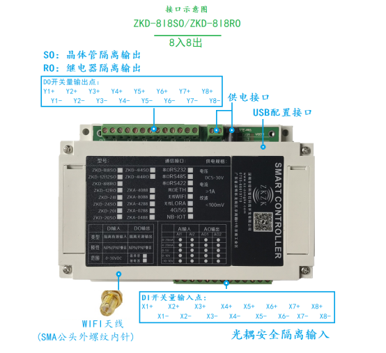 开关量ZKD-(8I8SO/8I8RO/8I8PO)-WIFI(黑色外壳)